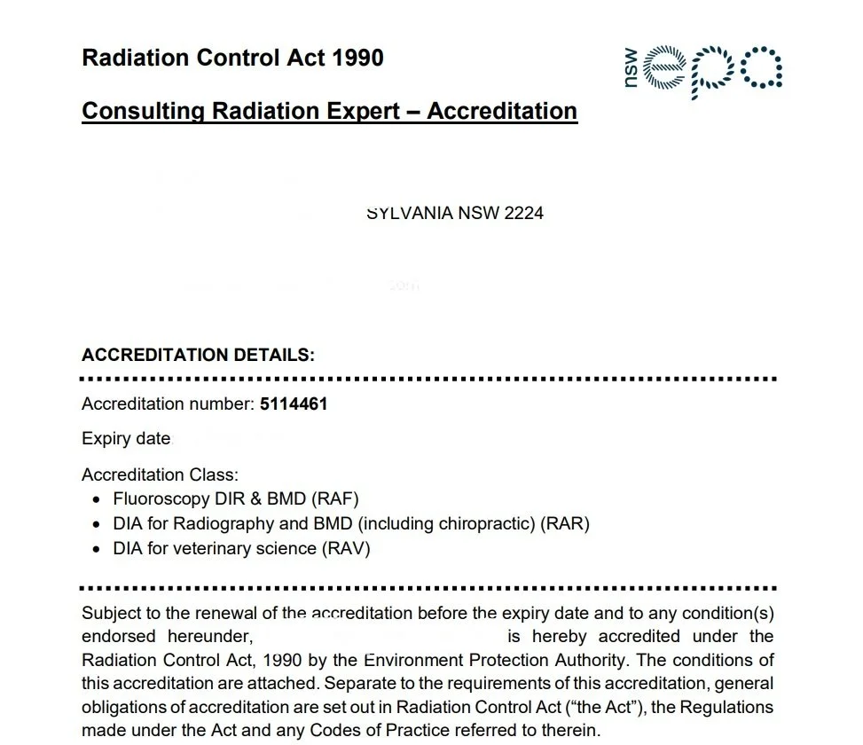 I am committed to helping hospitals, private radiology clinics, and veterinary practices achieve and maintain full compliance with NSW EPA Radiation Standard 6 (Parts 2, 4 and 6) while minimising downtime and ensuring the safety of both patients and staff.